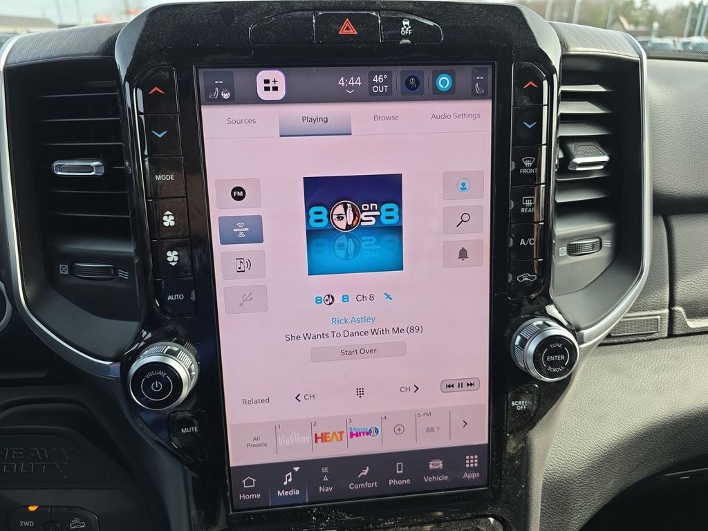 - Radio w/Seek-Scan, Clock, Speed Compensated Volume Control, Aux Audio Input Jack, Voice Activation, Radio Data System and Uconnect External Memory Control